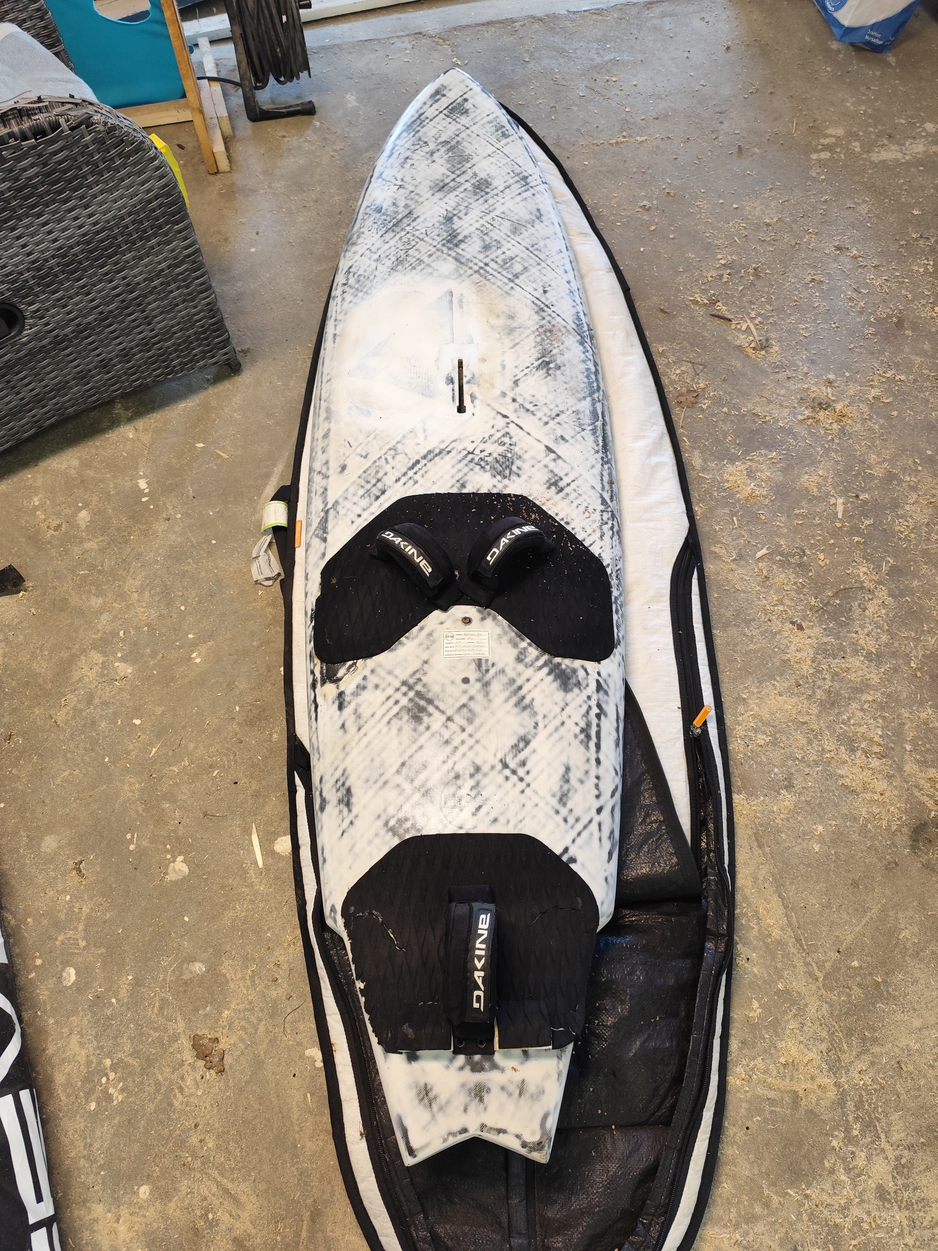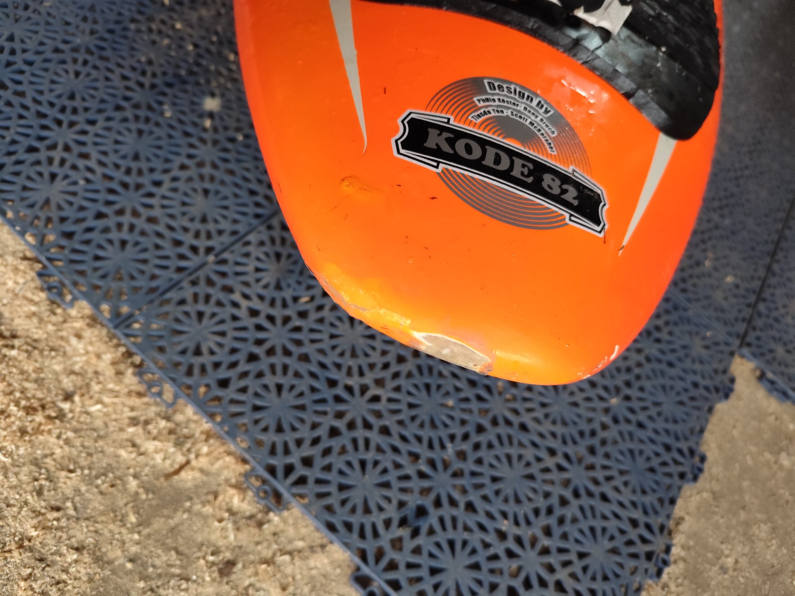 OS-custom board, väldigt trevlig i våg ridningen och stabil på vattnet, är något sliten och därav priset, bra för den som vill ha en billig men rolig bräda(quad)