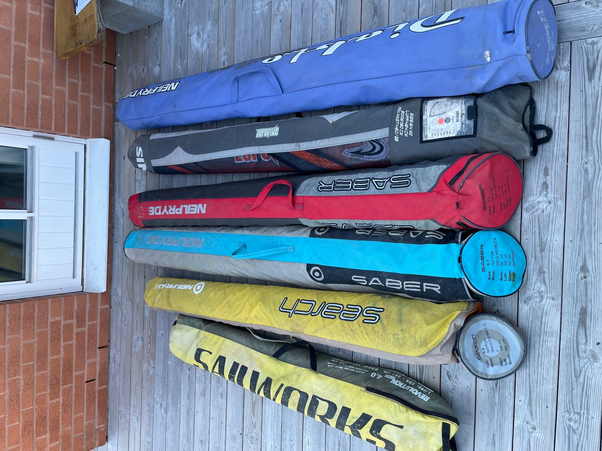 Segel – Niel Pryde (NP) Diablo 7,7 kvm, Simmer Zerofive 6,4 kvm, NP Saber 6,2 och 5,7 kvm, NP Search 5,0 kvm, Sail Works Revolution 4,0 kvm