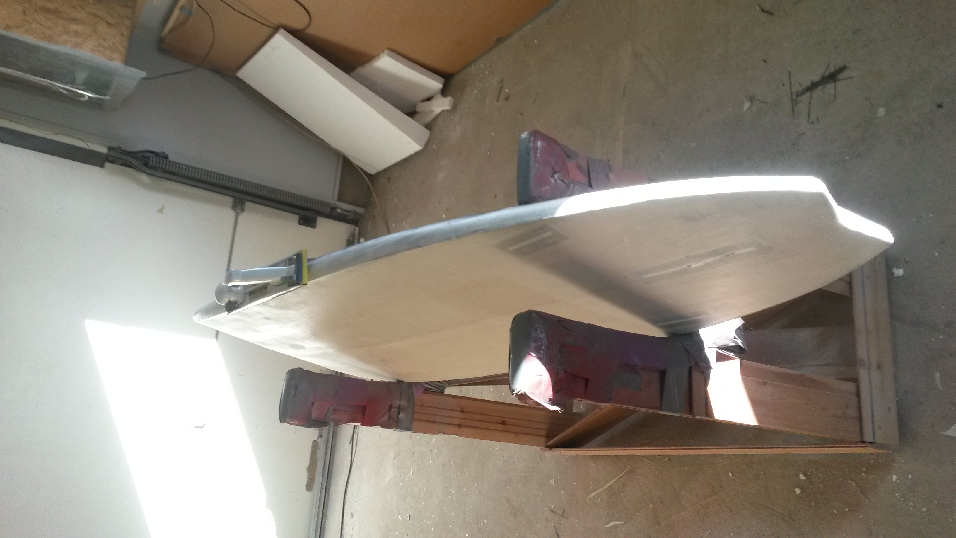 Lägger däck +kanter och när det härdat slipar jag kanterna och lägger sen botten+kanterna igen. Efter slipning brukar det vara 90% ok. Vill man ha bättre finnish får man köra en omgång till. Tänkte köra reducerad finnish denna gång för att spara vikt. Hade det varit en divinycell bräda hade jag nog även skippat lack men nu är jag lite orolig för pinholes (små porer som suger vatten) och hc:n kan fyllas med vatten. Så jag tror jag lägger en lack för säkerhets skull. Sedan kan jag slipa ner den.