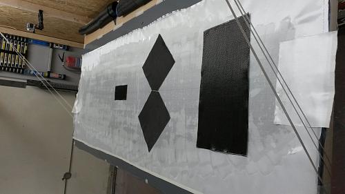 Lite bilder från däcklamineringen som gick bra. Enda smolken i bägaren var att den ena stora kolfiberförstärkibgen kom lite snett. Det gör inget men det stör mig lite.