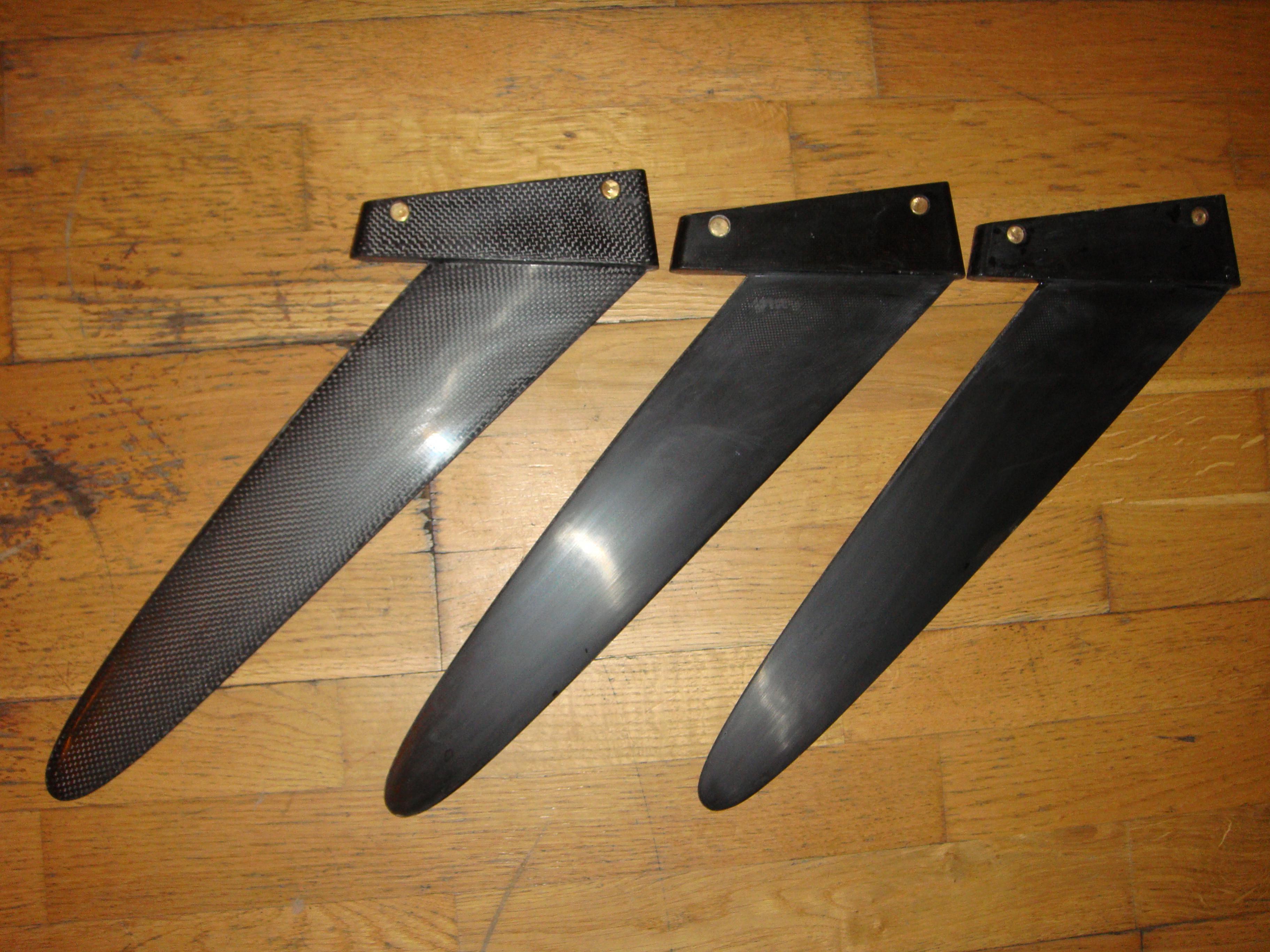 Jag slår ett slag för ”mina” weedfenor, som kan fås i valfri storlek men inte större än 28 cm :grin:. Tunn och hal profil som känns lite ”instabil” under 30 knop, med det menas att de kan kanske-kanske släppa om man pressar hårt. Över 30 biter de så in i…Fenorna är små (liten yta), tunna i profilen o kräver lite mer av seglaren för att ”få igång de”. Jag har kört 28cm med 7.9 på min 46 bred speedplanka, den bet rejält utan minsta tendens till släpp trots att det var lite vind o gick under 30. Samma ekipage apöverriggat med 7,9 resulterade i rena rama Formula-prestandan, men det var i princip omöjligt att segla 7.9 så det är den sanna orsaken:grin:. 28 fenan på min 58 breda planka känns liten, där märker man det jag beskrivit om att den känns lite ”instabil” under 30, väl över så är det nemas problemas. Dessa fenor skall nog seglas en storlek större så att säg. Kan fås i princip i ”valfri styvhet”. Själv har jag den styvaste, medan jag lånat ut de två andra mjukare…Fenorna är custombyggda, god finnish. Fenorna på bilden är ”proto” varianter…