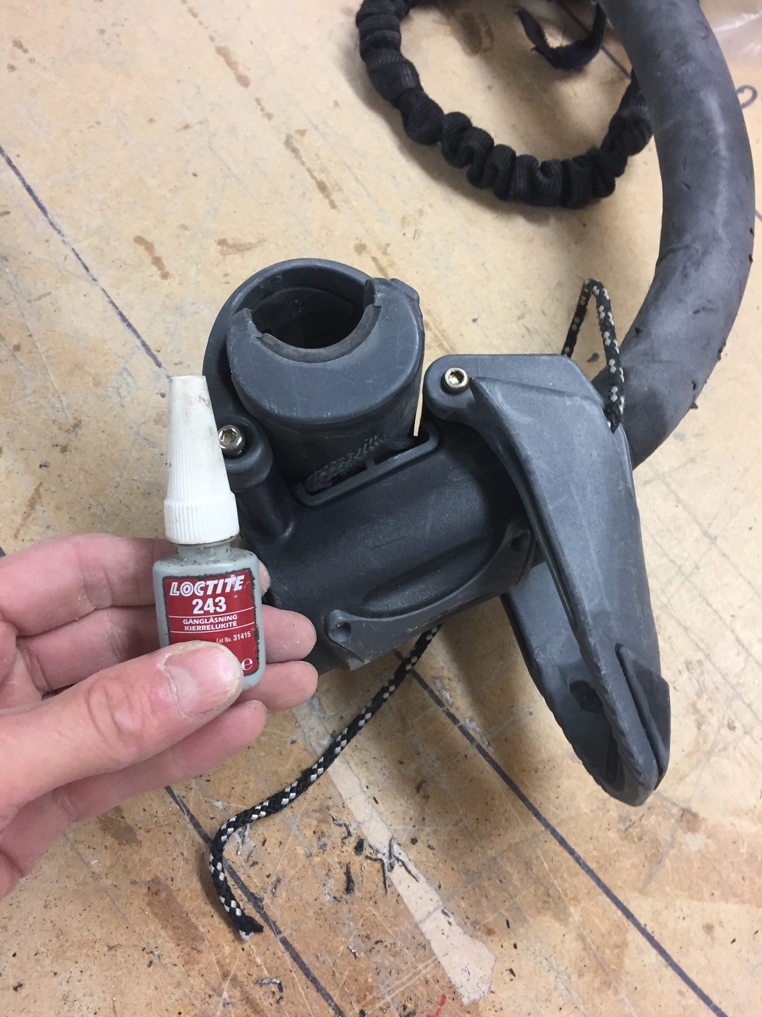 Monterar dit bombeslaget och låser skruvarna med gängsäkring.För säkerhetsskull väntar jag tills det blir lite varmare i vattnet innan jag kör med bommen men förmodligen är lagningen starkare än övriga bommen.