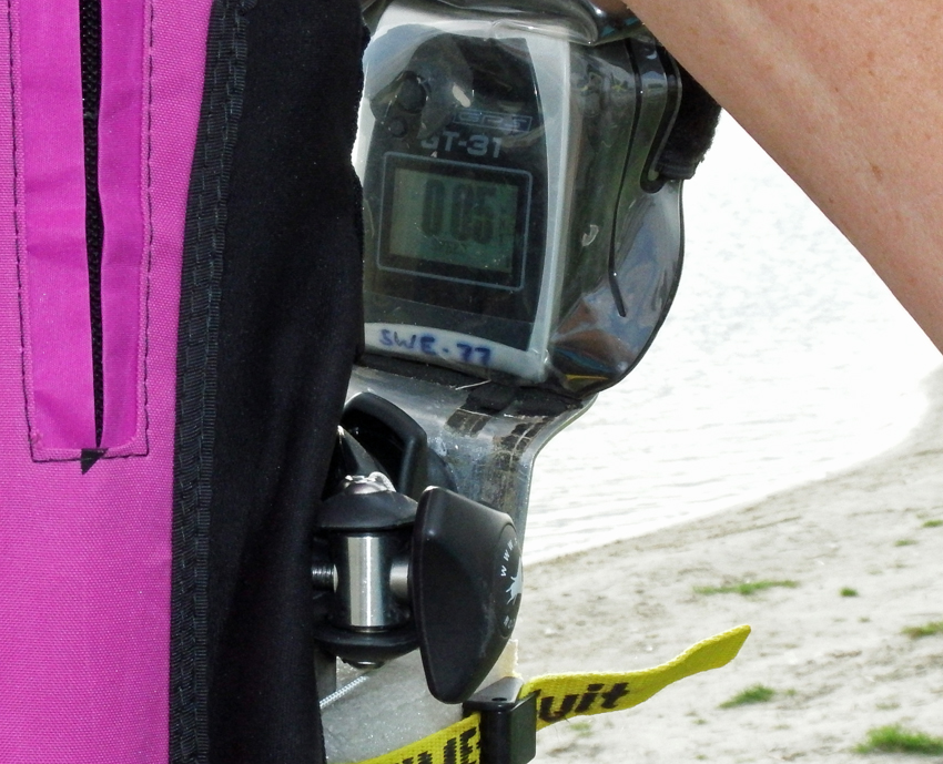 GPS:en kan fästas på många olika sätt. Bara en rem runt plåten, då slipper man fylla ut med röret på plåtens basida. Eller bara tejpa fast den, eller…… Viktigt är doch att säkra GPS:en med en fångrem runt bomen.