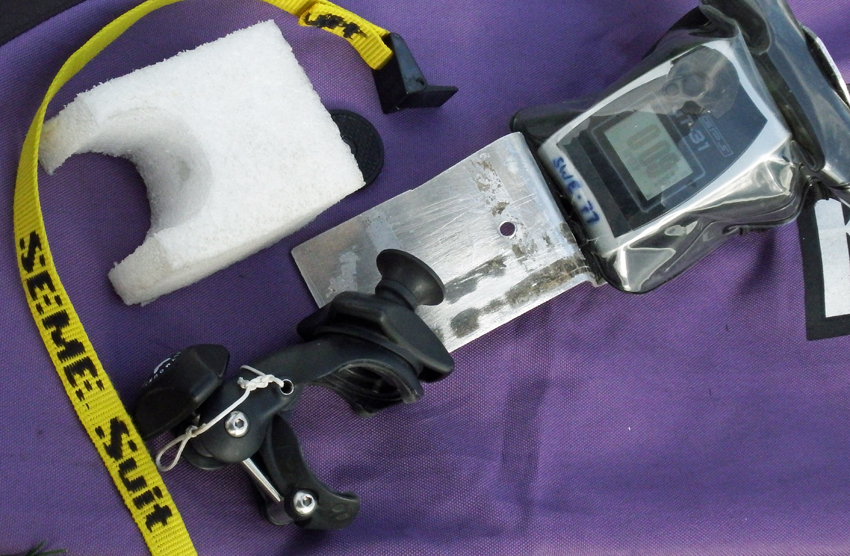 Plåtbit, rem, cellplast, tejp, mastbit eller rörbit och det viktigaste en Flymount som just är utvecklad för att fästa runt mast eller bom.