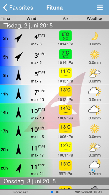 Det är ju en front på g – och vinden ökar när den närmar sig. men frågan är bara mer exakt när den (och antydan till regnet) är nästan framme, ty då blir det mer osäkert med vinden (som antagligen lägger sig lite då). Det är bara att hoppas att fronten rör sig lite långsammare än prognosen f n säger. Som läget ser ut nu så är vi iaf några som siktar på att köra Fituna på e.m. – och väl är kvar ett tag om vinden är det …