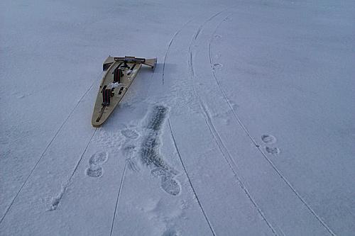 Det vi kan hoppas på inför de vindar Trimmarn talar om är ett rejält töväder och sen någon kall natt. Isen håller än, Kinetic! -