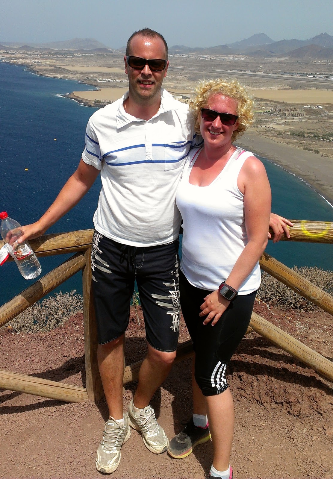 Vinden tvekade lite på förmiddagen men det såg ändå ut att bli en bra surfdag. Vi började dock dagen med en promenad bort till Montana Roja och uppför detsamma. Det blåste väl ca 12-13 m/s nere vid havsnivå och berget är 200 meter högt så vinden däruppe var inte att leka med. Ritva blåste nästa av stigen på ett ställe… men det var en fin promenad och utsikten uppe från berget är vacker.