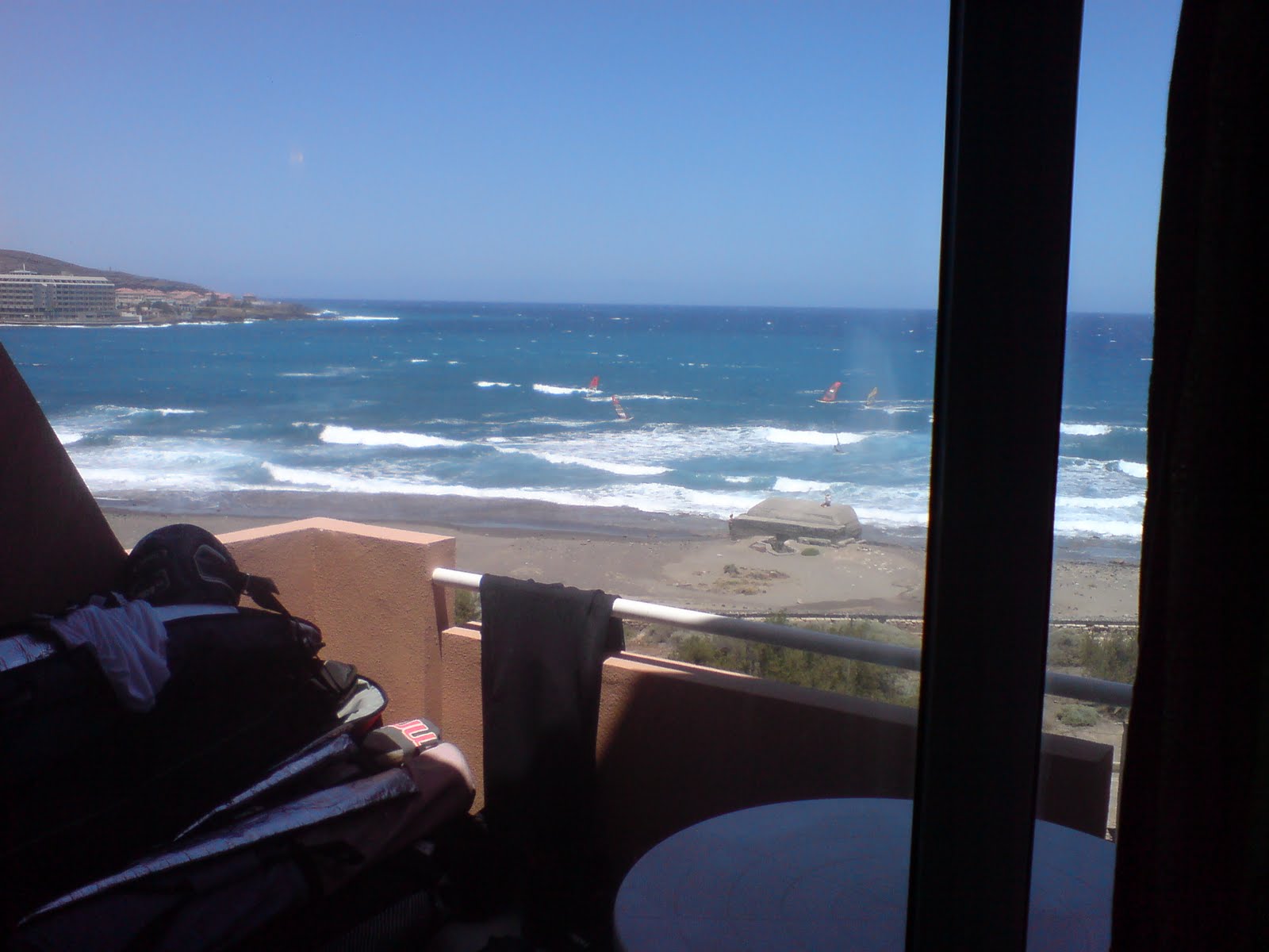 Nu sitter jag i lägenheten och tittar ut över surfet i Cabezo (El Medano, Teneriffa) och känner mig ganska mör. Vi fick igår höra att det skulle vara mest vind på förmiddagen idag och därför ringde väckarklockan kl 08.00 imorse. Vi var ute på vattnet straxt efter tio och körde två långa pass fram till lunchbreaket vid två. Det visade sig dock bli en lång lunch och slutet på denna surfdag. Vi var riktigt utmattade efter förmiddagens surf och en lång tupplur var ofrånkomlig.