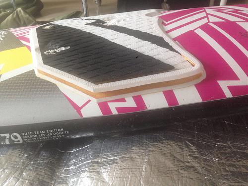 Så här ser i alla fall footpadsen ut på ena sidan, på andra ställen är den intakt. Här är limmet jag hittat.
