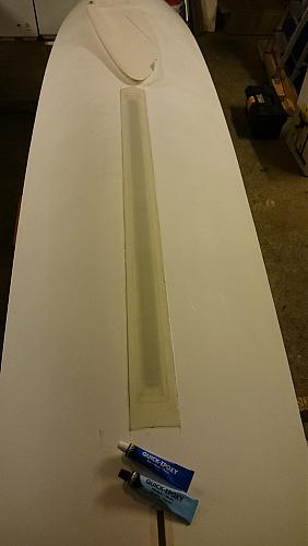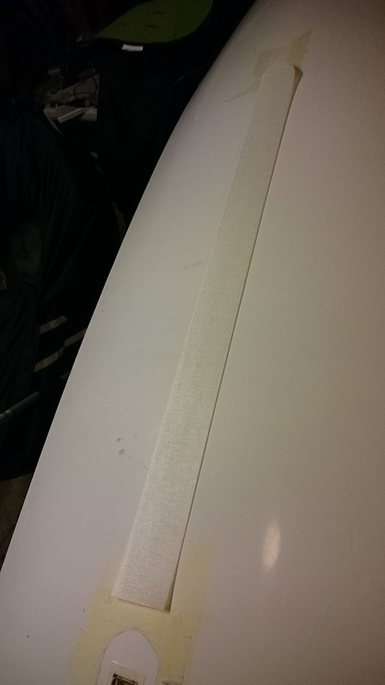 Nu har jag äntligen kommit till skott och limmat på de 75 mm breda mylarflapsen jag köpt från One Design Center enligt Jonas DVs instruktioner.