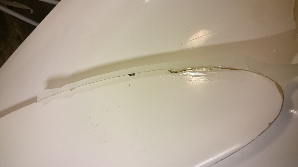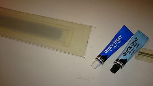 Använde Biltemas snabbepoxy (en av de saker som faktiskt verkar vara bra från ”Feltema”). Den medskickade tandade spateln var suverän. Det var snabba ryck, öppettiden är kort (några minuter) och en försvarlig del av den går åt till blandandet av basen och härdaren. Så tryck ut innehållet i bägge tuberna, blanda som en duracellkanin, stryk ut, lägg på flaps och tryck till. Vi var två som hjälptes åt att lägga ut limmet och det var mycket bra. Använde hela limsetet till limning av en flaps, blev rätt lagom, det är inte läge att blanda för lite och upptäcka att det fattas lite när man lägger ut limmet…