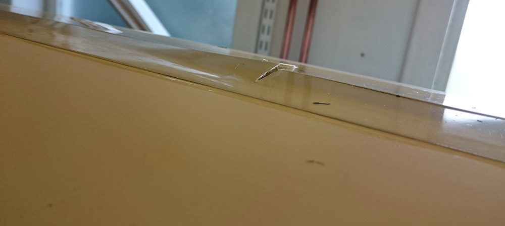 Efter att det härdat ett dygn skar jag upp skåran och snittet på tvären bakom cb med en mattkniv med nytt blad: