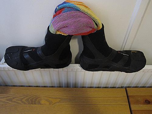 Som tack för tips i detta kan jag ge ett torktips på våtskor (inte bra när de börjar möka efter tre dagars fukt…):