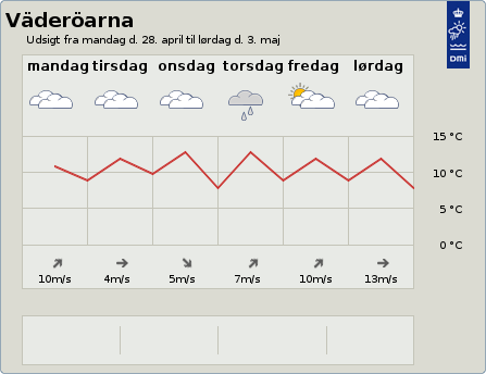 Sön: Väst, 9-12 m/s Dygnets högsta vindhastighet 13 m/s. -