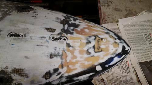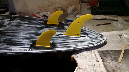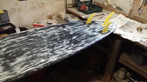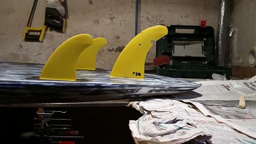 Jag har precis dunkat på Svennes sörf-säänd på brädan och det känns jäkligt greppigt! Lacken är på och fenorna på plats! Bara padsen kvar…trodde jag, men efter att ha klämt lite extra så märkte jag att det va kexigt under framhälarna…suck. Men men, one step forward two steps back. Så har hon fått sig ett namn också. -
