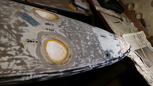 Jag monterade fotstroppspluggarna med microballonger innan glasningen för jag ville få glasfibern ovanpå som förstärkning.