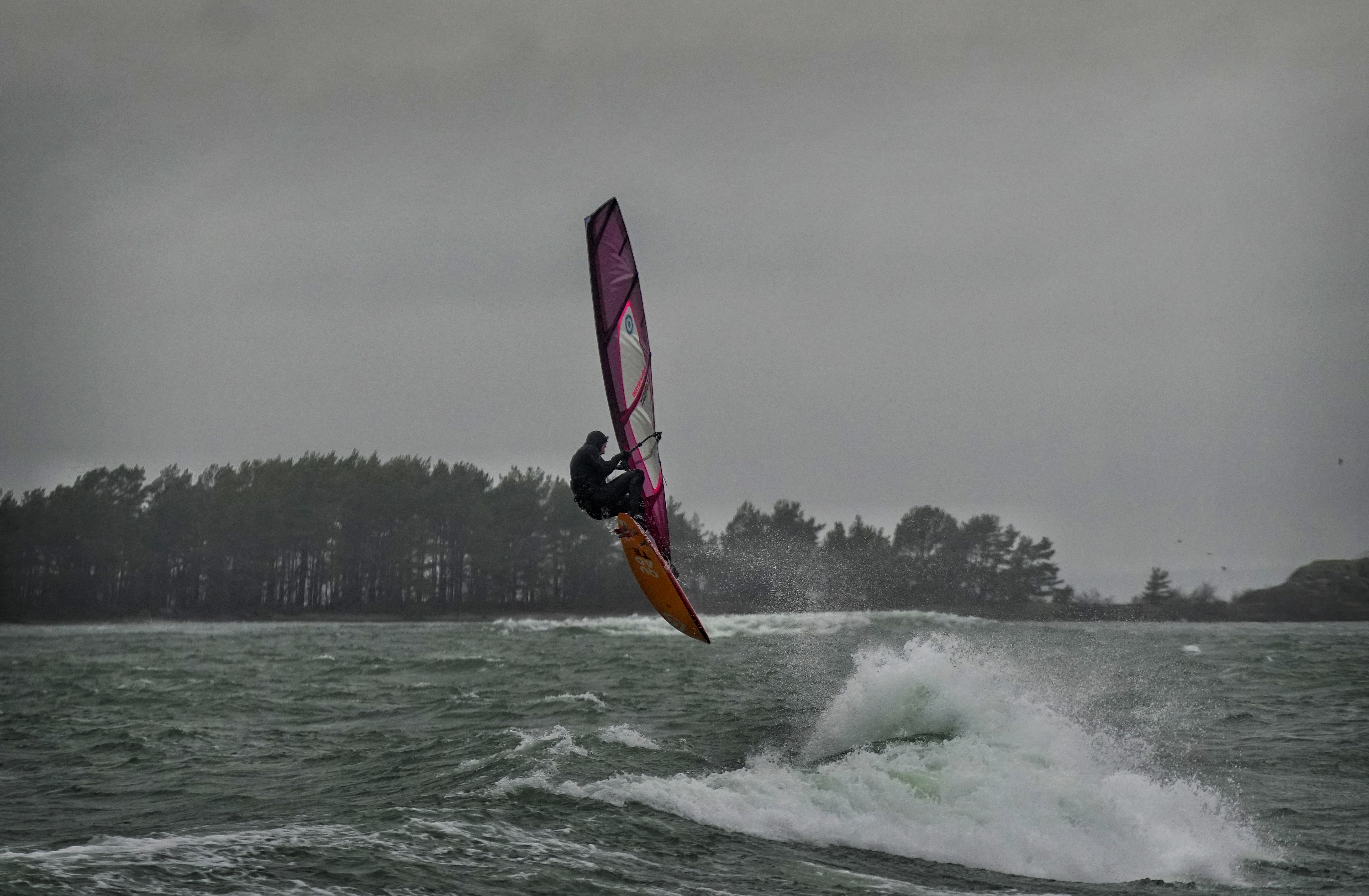 Detta påminner mig om min första framåt i ”riktiga” förhållanden -95?. Hade kommit så långt att jag vattenstartade upp, aldrig landat rent. Grejen var bara det att jag gjorde dem på i princip plattvatten. Sen var vi på Sylt och första dagen blir det 5.0 klockren sidshore 1.5-2m vågor, hade aldrig seglat i nåt liknande, bara harvat runt i rak onshore vid Klitterhus. Andra repan laddar jag på som vanligt på en rejäl ramp, vad kan gå fel liksom? har ju aldrig överroterat innan…. första halva rotationen var lugn, vid andra halvan börjar man fundera om man inte borde landa snart, vid andra halvans slut och ingången på andra varvet börjar man inse att det här kan aldrig gå väl men jag håller väl kvar….. efter typ 1.5 varv tok-kraschar jag, vrider bakbenet så det känns som knäet ska gå av och får bommen i munnen så blodet sprutar. Lyckas ta mig in till stranden och får hjälp till sjuksyster. Resten av veckan tillbringades hoppandes på ett ben med öl i hand. Har fortfarande ett ärr inuti munnen som minne. Sen dess har det blivit många framåt