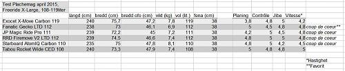 Ruskigt små skillnader i ”Planing”, ”Contrôle”, ”Jibe”, ”Vitesse”.