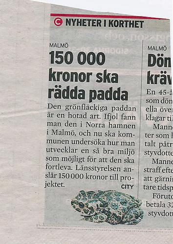 När det gällde paddorna i Norra hamnen fick man fram 150.000 kronor direkt och hägnade in området.