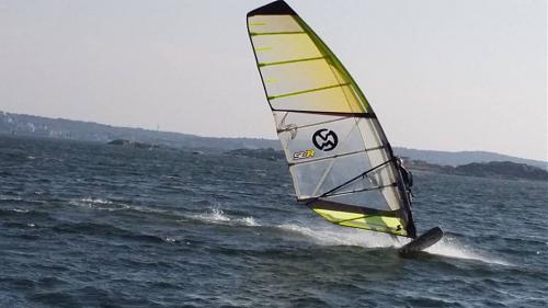 På bilden: NO 10m/s, byar på 14 m/sJag var själv, och drog sönder mitt segel när jag riggade, så jag gav mig aldrig ut.