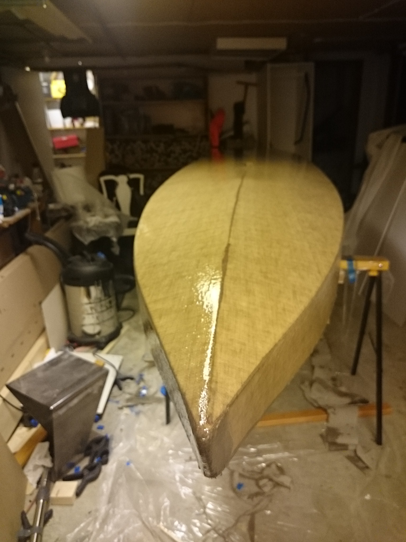 Det verkar iaf som att lamineringen gick vägen (iaf för ett otränat öga)!! Känns skönt…var som sagt lite nervös inför detta och när epoxyt började ta slut mitt i lamineringen ökade pulsen lite till!Nu börjar jag räkna ner till både semester och sjösättning…gör sista jobbveckan efter en hysterisk vår!