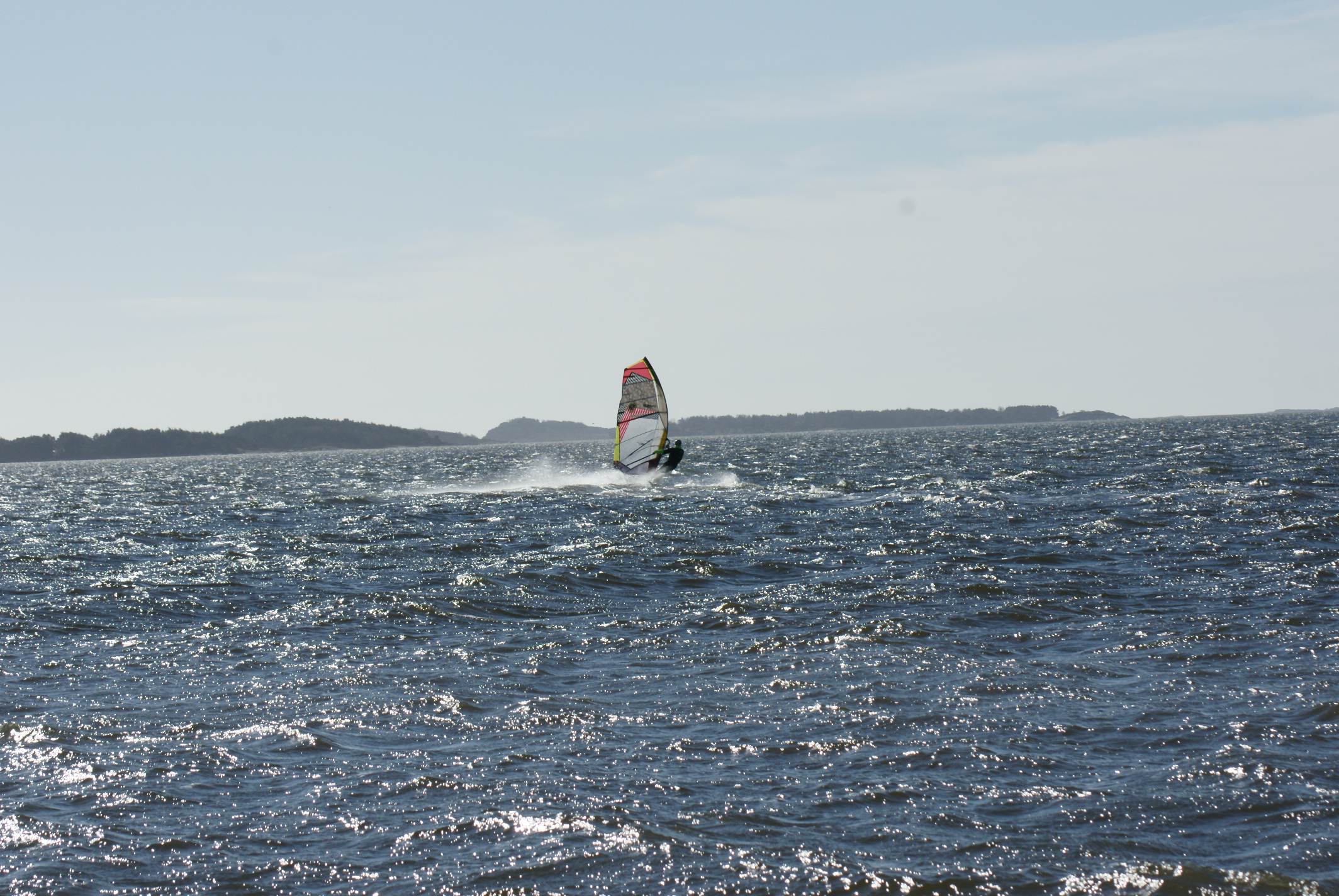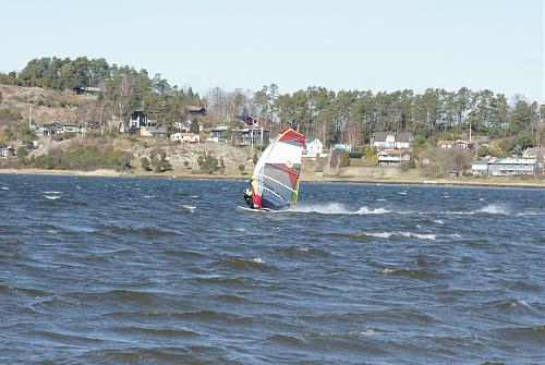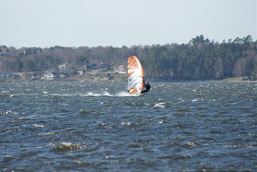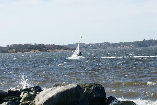 Vind från NNV, byigt, +9 grader i luften och sol.