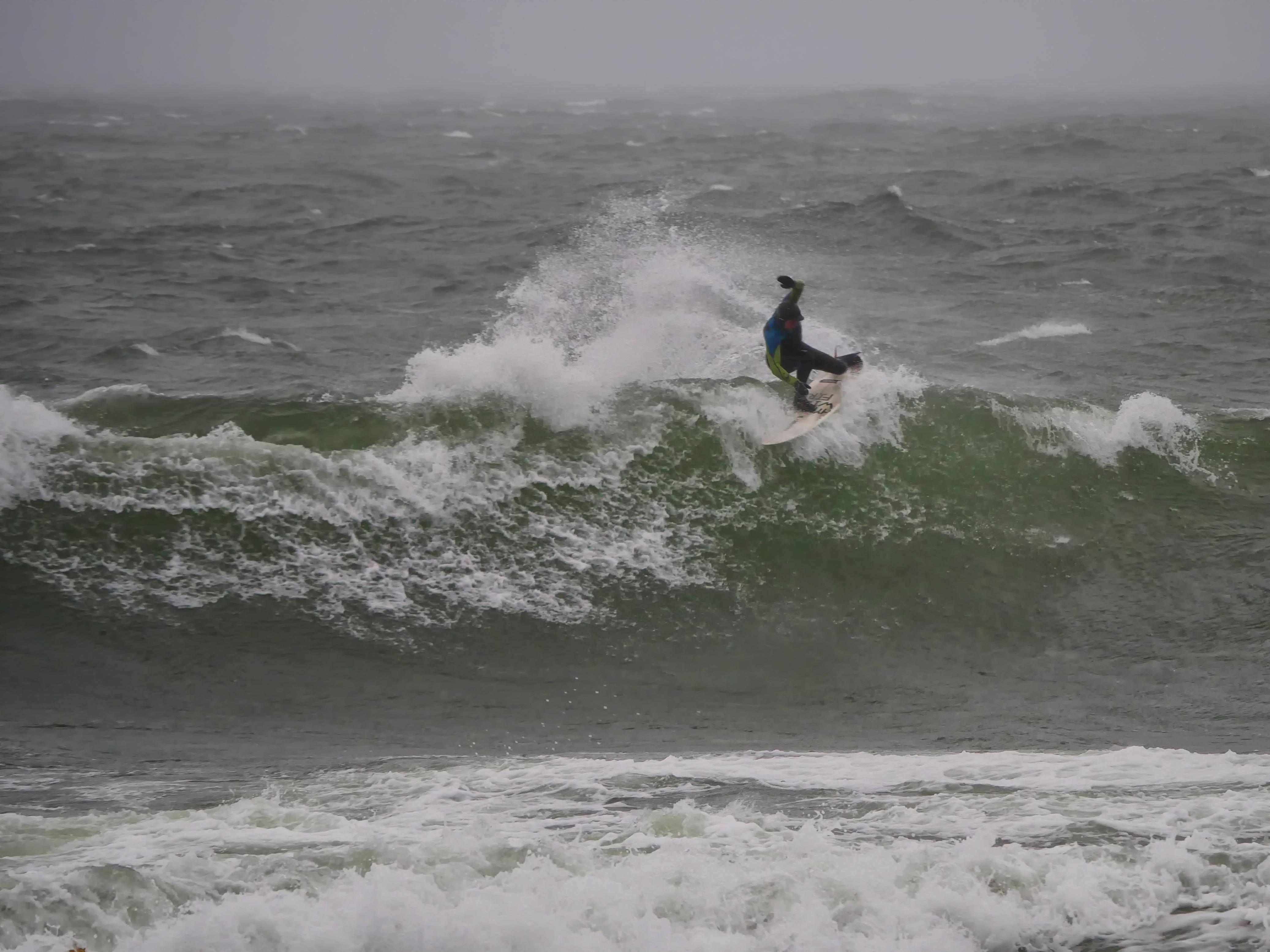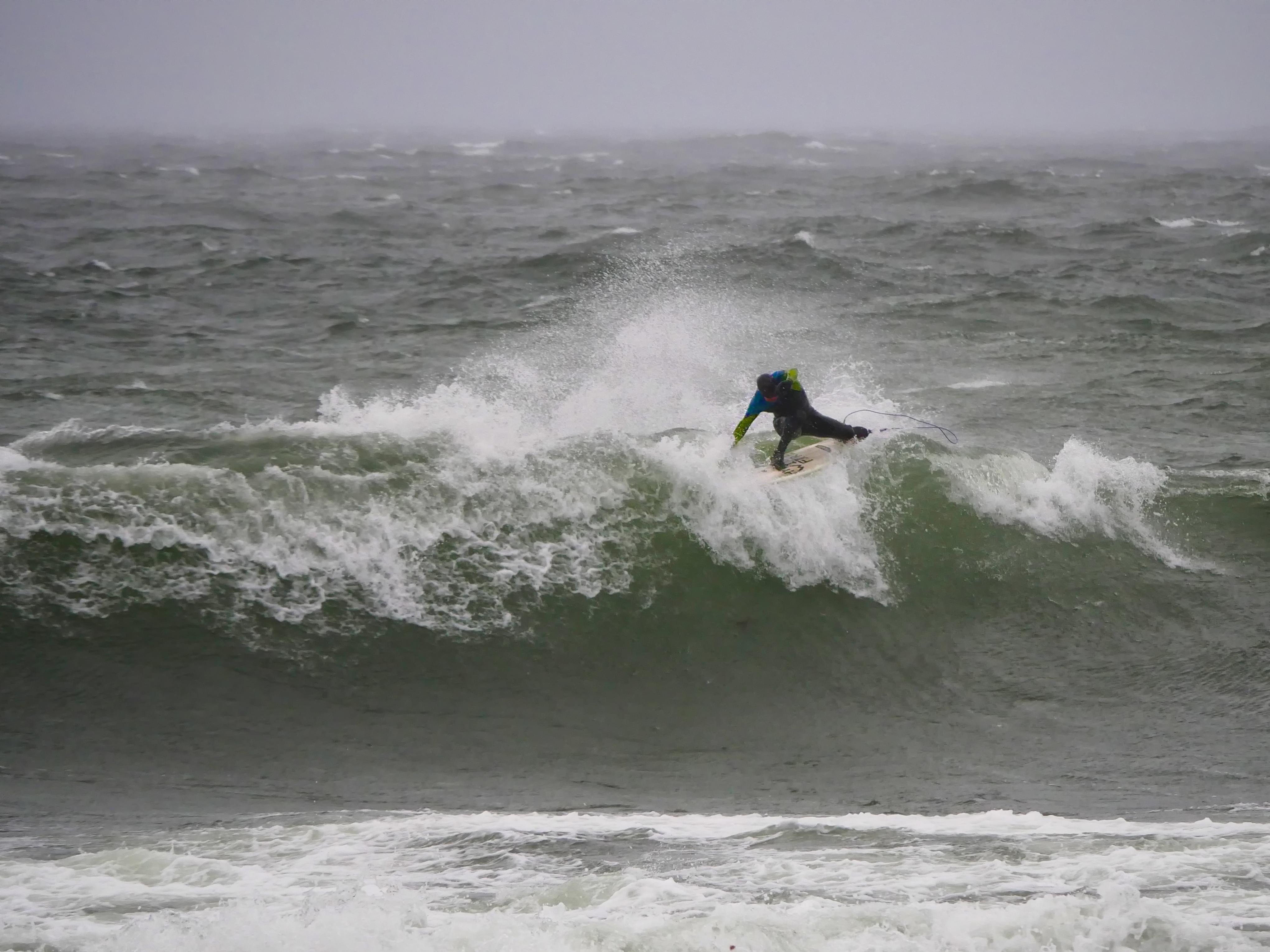 Kom ner strax efter 14. Blåste typ 20+ cross on från sydost, stökigt och rätt feta set. Hade bara med mig surf – tyvärr med tanke på att vinkeln inte var helt värdelös för vindsurf, även om det var långt från side-shore. Enligt några surfare hade det varit side-shore tidigare…