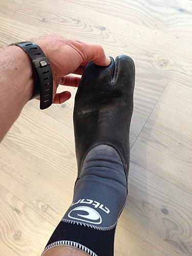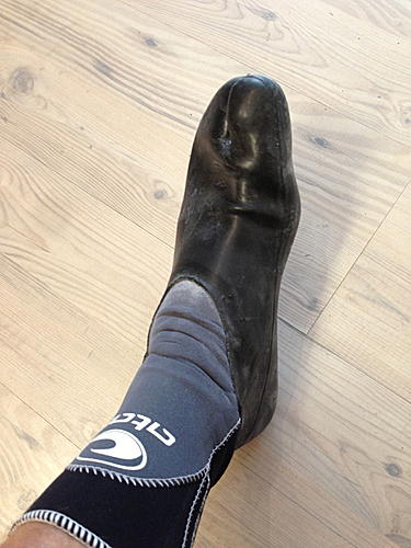 För information så sliter jag inte ut mina utifrån utan inifrån. Neoprenet under höger stortå liksom bara faller isär. Jag gissar att jag liksom spänner tån nedåt när jag seglar. Lägger man ihop de senaste tio årens skor har väl min högra stortå grävs sig igenom drygt en decimeter neopren vid det här laget…