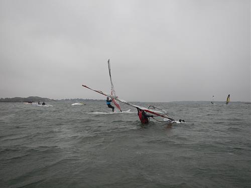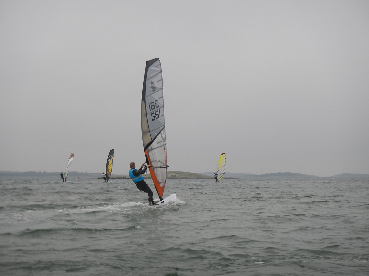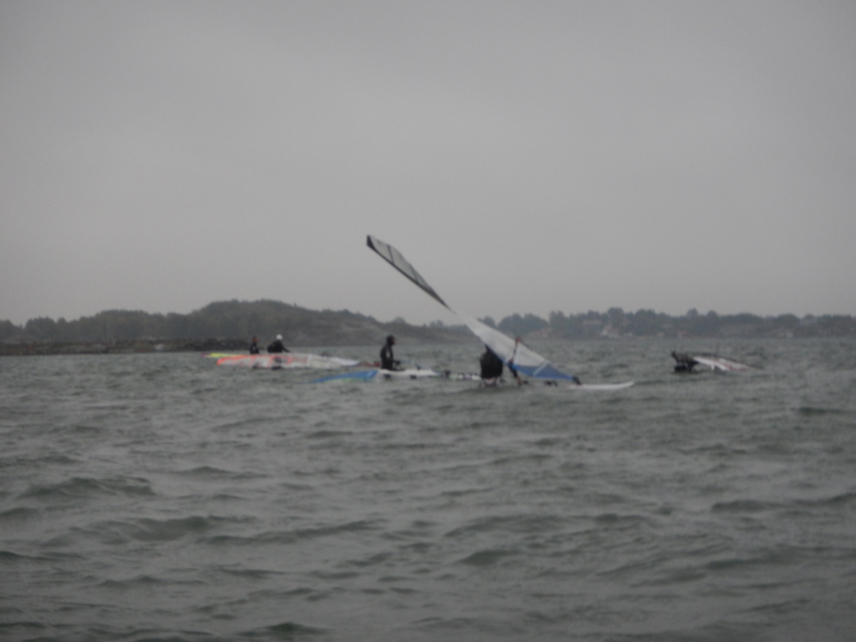 Så nu har vi riggat ihop, det blev bara 2 heat idag. Vinden dog av vid 13.00 och kom inte tillbaka förrän 16.45 men då hade alla åkt hem.