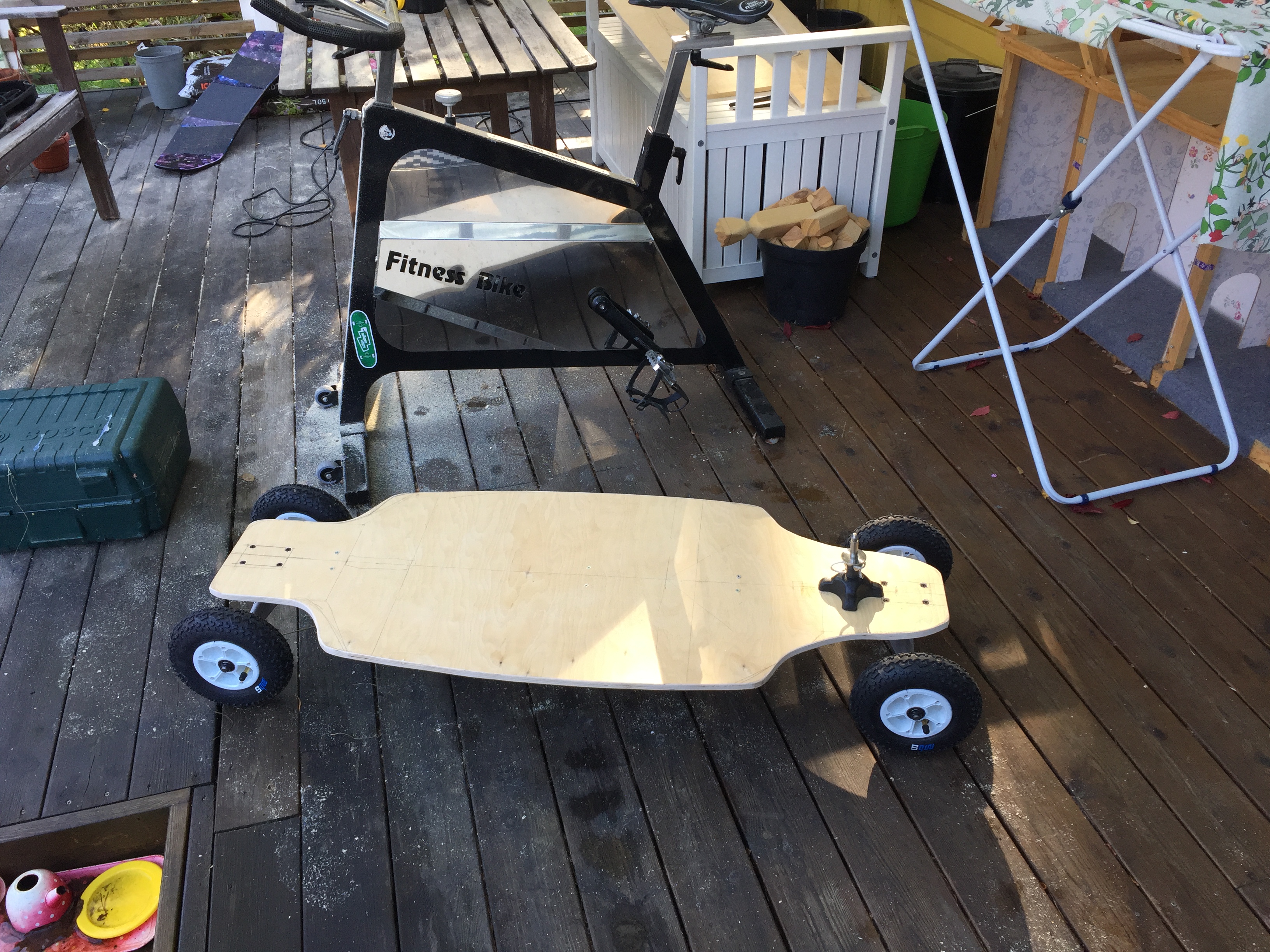 Bredden gör oxå att man får bra med moment, kommer inte va ngt problem med tighta svänga. En tanke är oxå att mina kids ska kunna köra lite på den. Fortfarande kortare än en isbräda, enligt pelegrinens inlägg.Jag tror den kommer rulla lite lättare nu när mastfoten inte lägger tryck direkt på framtrucken (vilket ör en klassisk tvärnit på vanliga skateboards)