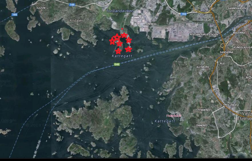 I Göteborgs hamn finns massor av vindkraftverk, bla Big Glenn. 3km norr om Fiskebäck (Findwind tycker 8 vindkraftverk med ett minsta avstånd om 12.6 km.)