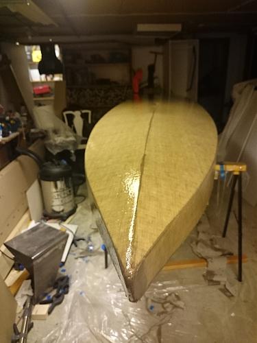 En annan sak att tänka på är att ha mycket epoxy hemma när man drar igång med lamineringen. Fick som sagt halvt panik när epoxyn började ta slut när jag kommit halvvägs men lyckades arbeta ut epoxyn och släcka de bränder som uppstod med lite sista-sekunden-lösningar som man kanske inte hade gjort i förstahand