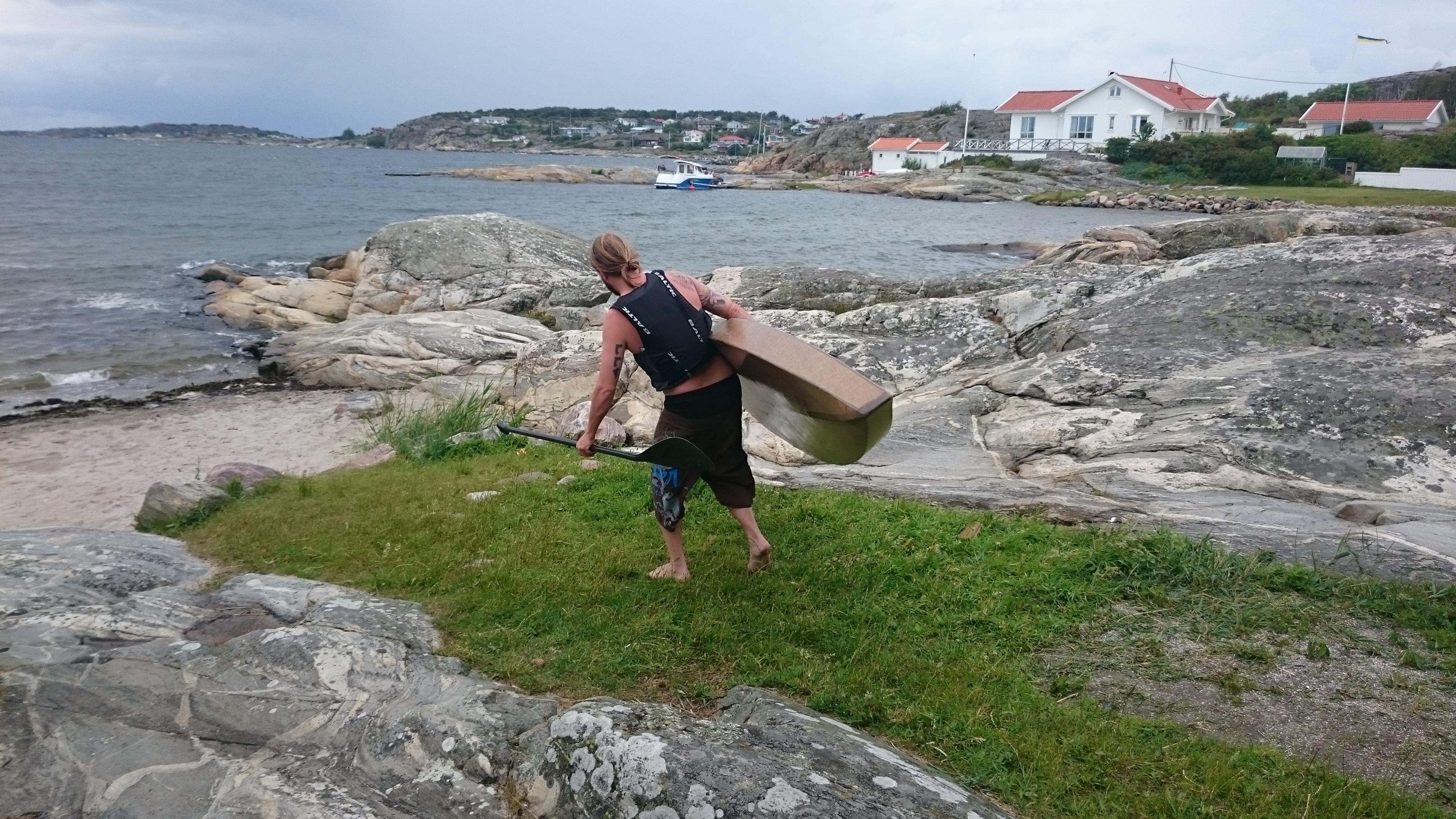 Körde ner brädan till vattnet mha kanotvagnen som jag köpt på Biltema…funkade kalas!